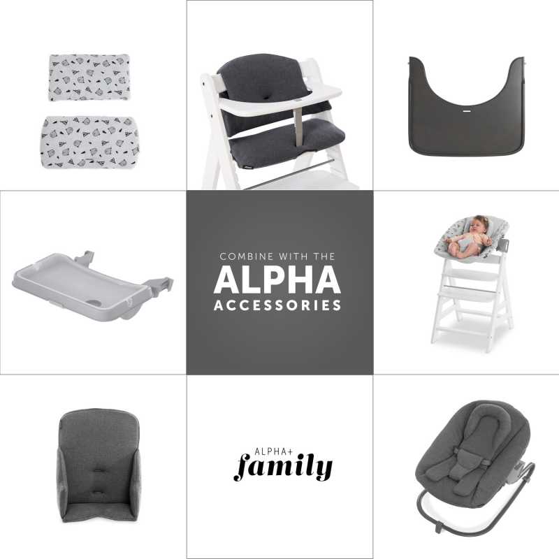 Jídelní židličku Hauck Alpha Select Charcoal obdržíte s madýlkem před dítě, pětibodovým pásem a mezinožním páskem.