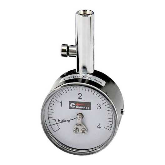 Celokovový profesionální pneuměřič PROFI 4kg/cm2 od značky Compass určený pro měření tlaku v pneumatikách.
