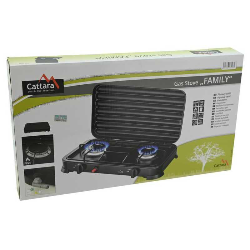 Plynový vařič Traveler FAMILY od značky Cattara. Je vhodný jak na cesty, tak i třeba na zahradu. Je vybaven dvěma hořáky pro ohřev, nebo přípravu pokrmů.