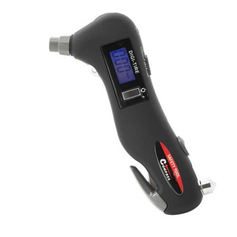 Compass digitální pneuměřič SAFETY TOOL s celou řadou bezpečnostních doplňků pro nouzové použití např. při dopravní nehodě.
