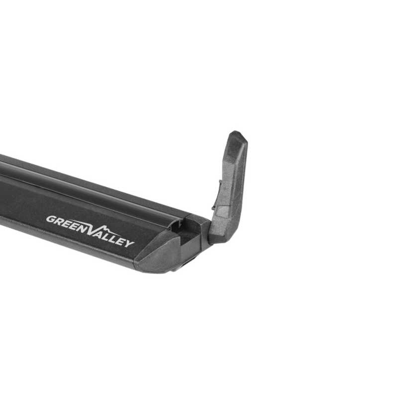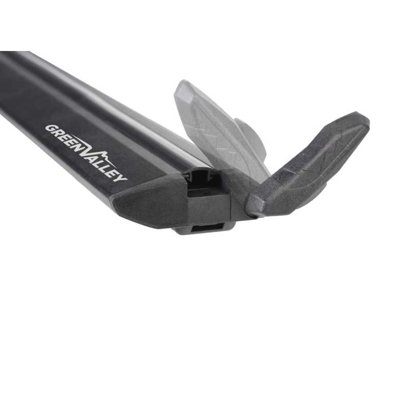 Dvojice černě lakovaných hliníkových nosných tyčí Aurilis Green Valley Crossbar Vento Black 126 cm s T-drážkou a asymetrickým průřezem o šířce 80 mm, který snižuje aerodynamický ráz, hlučnost a spotřebu paliva. T-drážka umožňuje dokonalou kompatibilitu s většinou střešních doplňků na trhu. Odstupňovaná stupnice na tyčích usnadňuje montáž na vozidlo.