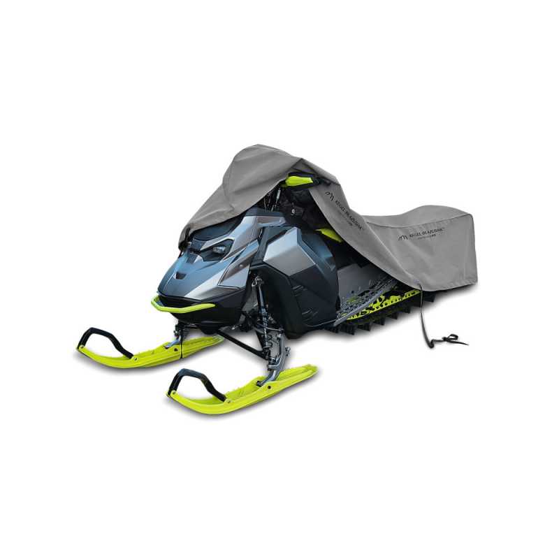 Nepromokavá krycí plachta na sněžný skútr Mobile Garage M 310/72/113 parkovaný venku k jeho ochraně proti nepříznivým povětrnostním podmínkám. Vhodná také k použití uvnitř budov.