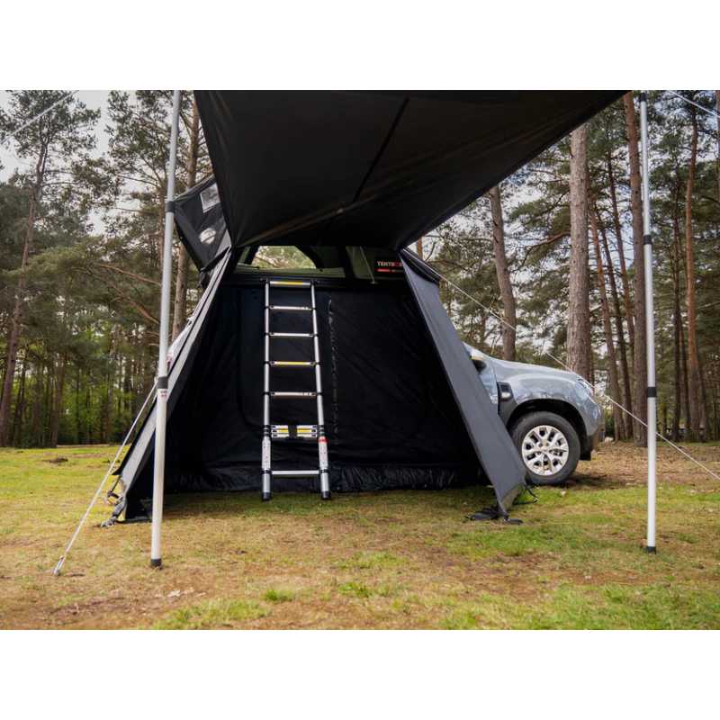 Na boku svého vozu Cargo 2.0 rychle vytvoříte krytý prostor; ideální pro schování, když prší, nebo pro vytvoření stínu, když svítí slunce. Spusťte režim „křídla“ a užívejte si většího chráněného prostoru. Naše nová konstrukce zakrývá žebřík, aby plně zahrnovala váš obytný a spací prostor. Kompatibilní pouze s modelem Cargo 2.0.