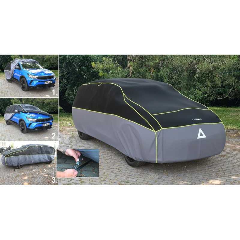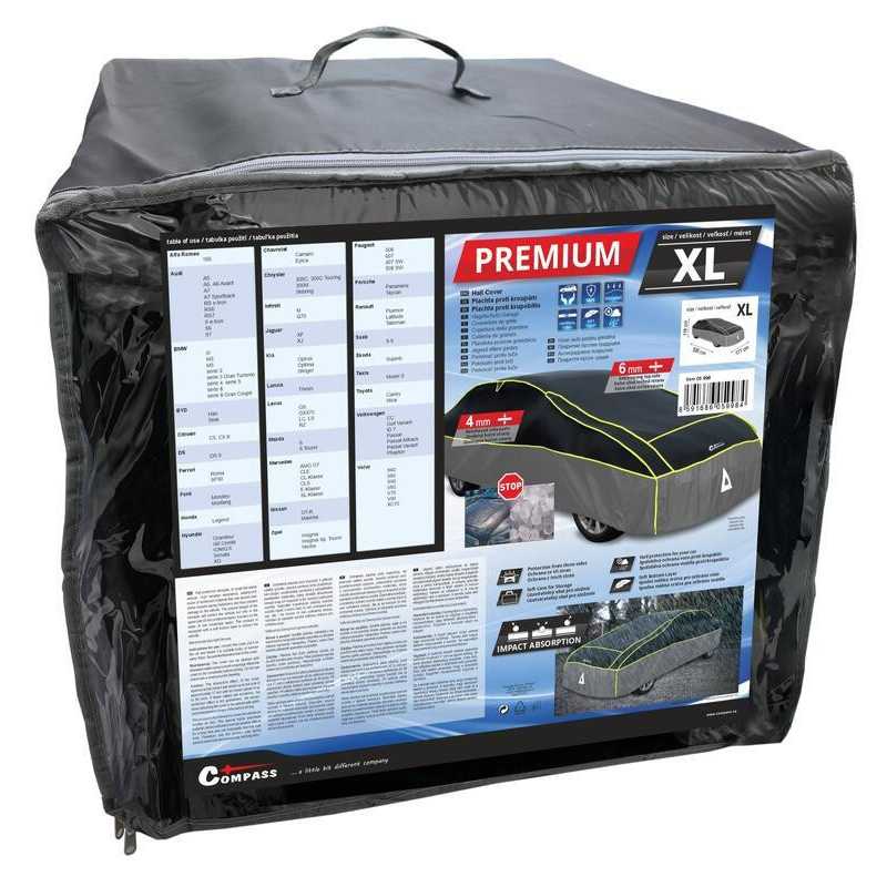 Ochranná plachta Compass Premium proti krupobití, která dokonale překryje celé vaše vozidlo. Je vysoce odolná proti povětrnostním vlivům. Plachta je určená pro vozy velikosti XL v délce 530 cm.